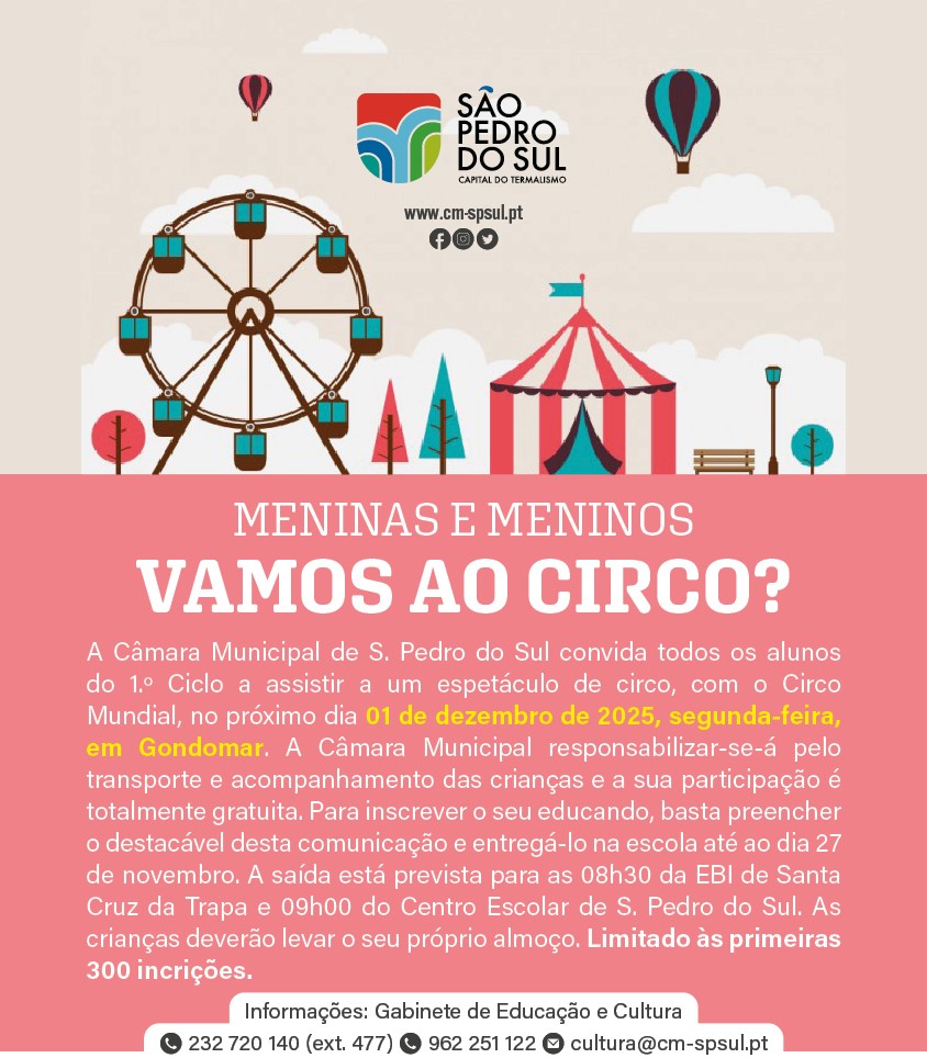 No dia 1 de dezembro a Câmara Municipal vai levar os alunos do 1º ciclo do concelho ao "Circo Mundial", em Gondomar.