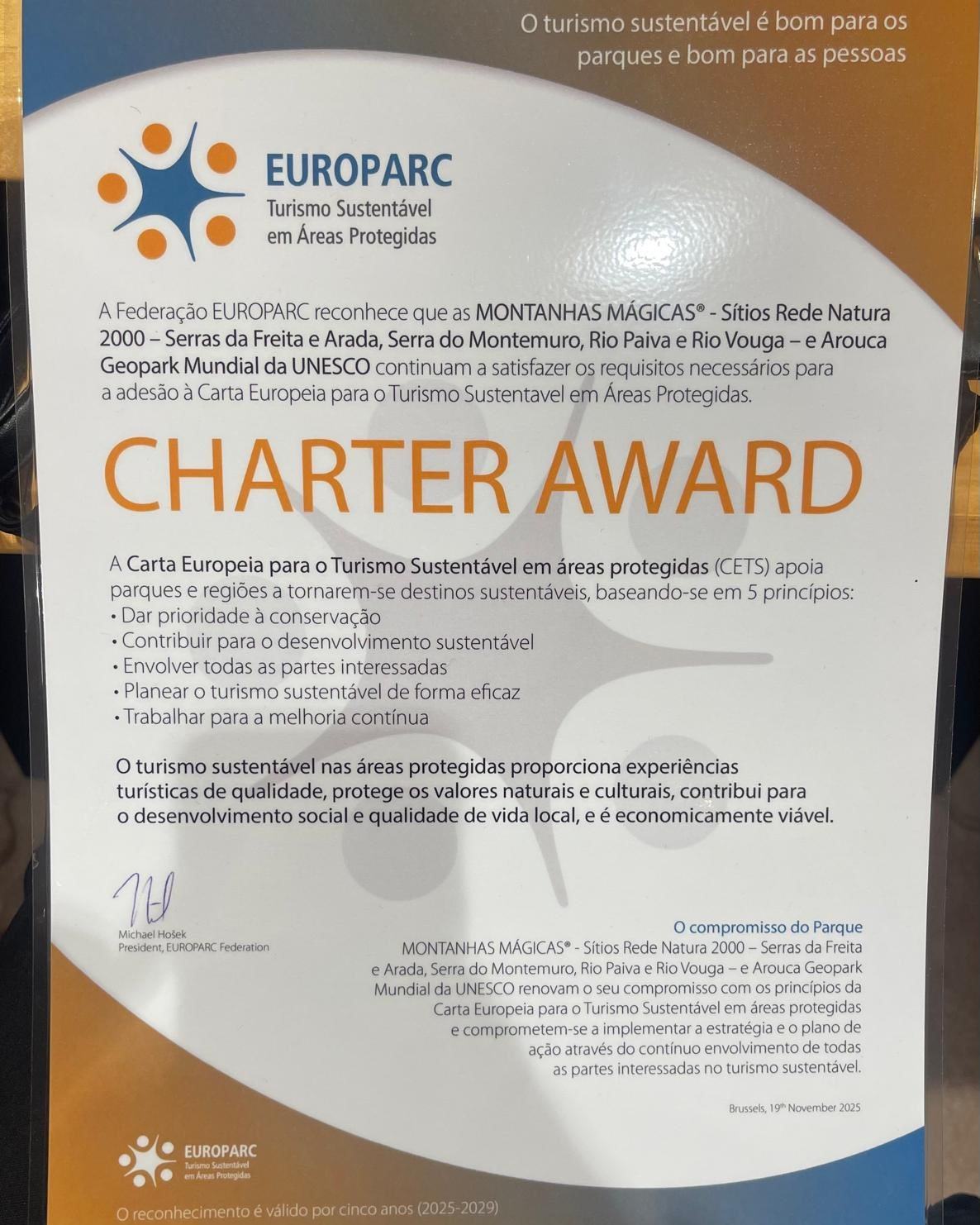 MONTANHAS MÁGICAS FOI O ÚNICO REPRESENTANTE PORTUGUÊS A SER DISTINGUIDO COM O GALARDÃO DA CARTA EUROPEIA DE TURISMO SUSTENTÁVEL